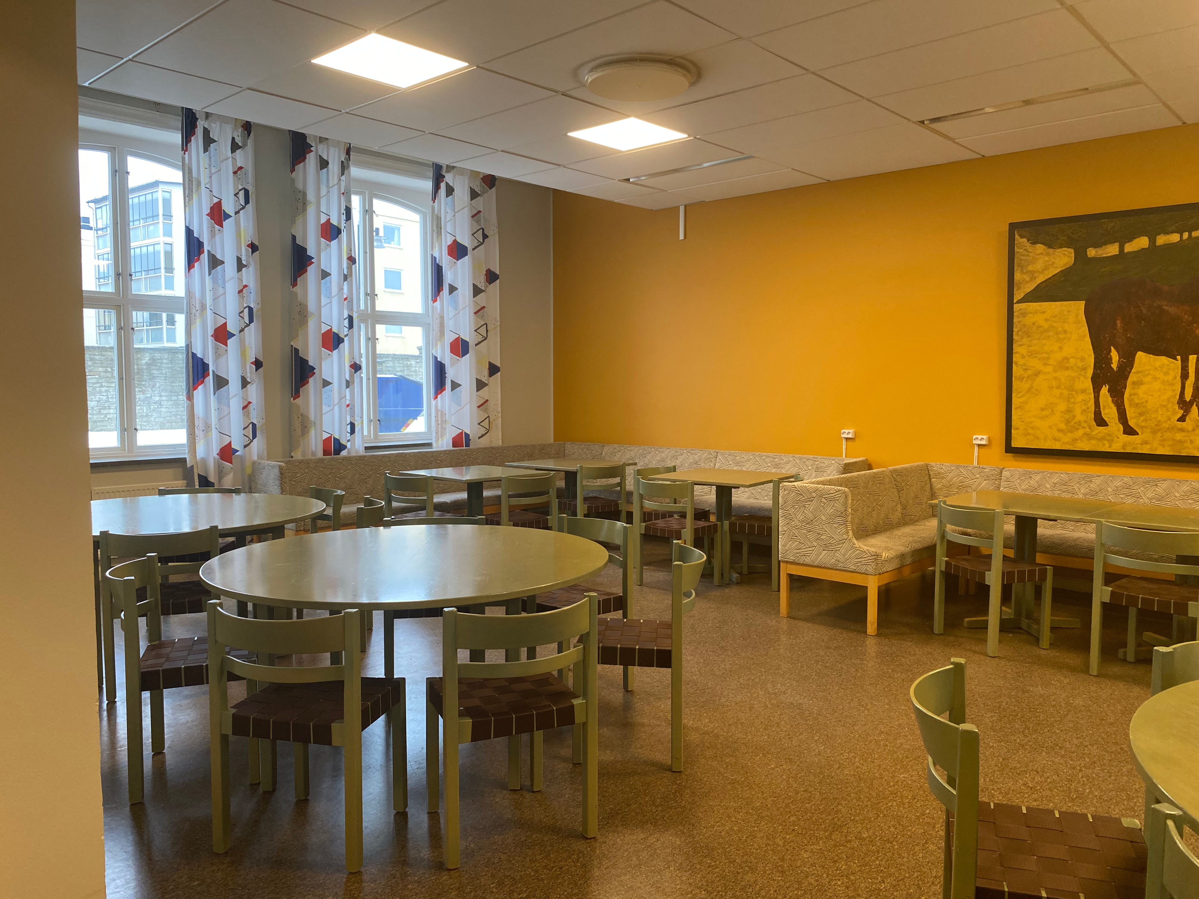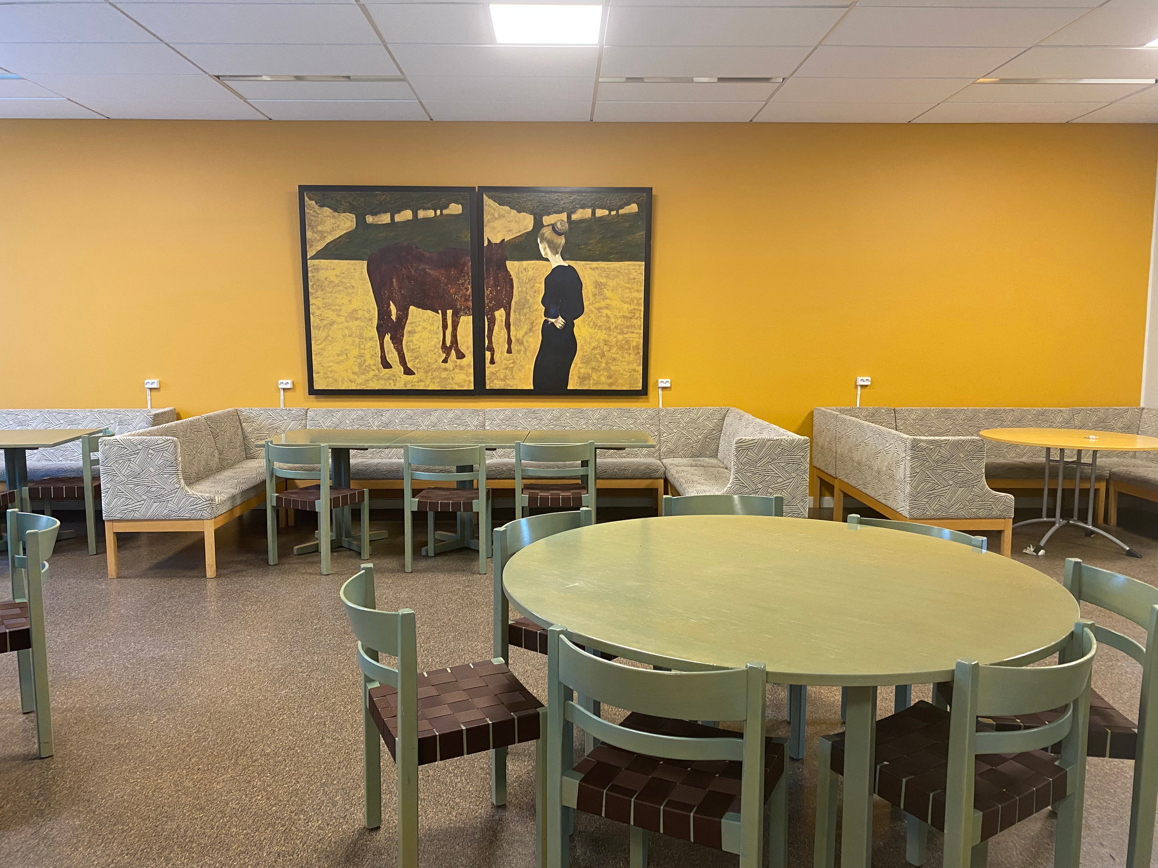 Seating area for staff and students. However, this is right outside the teacher offices and is next to the staff kitchen.