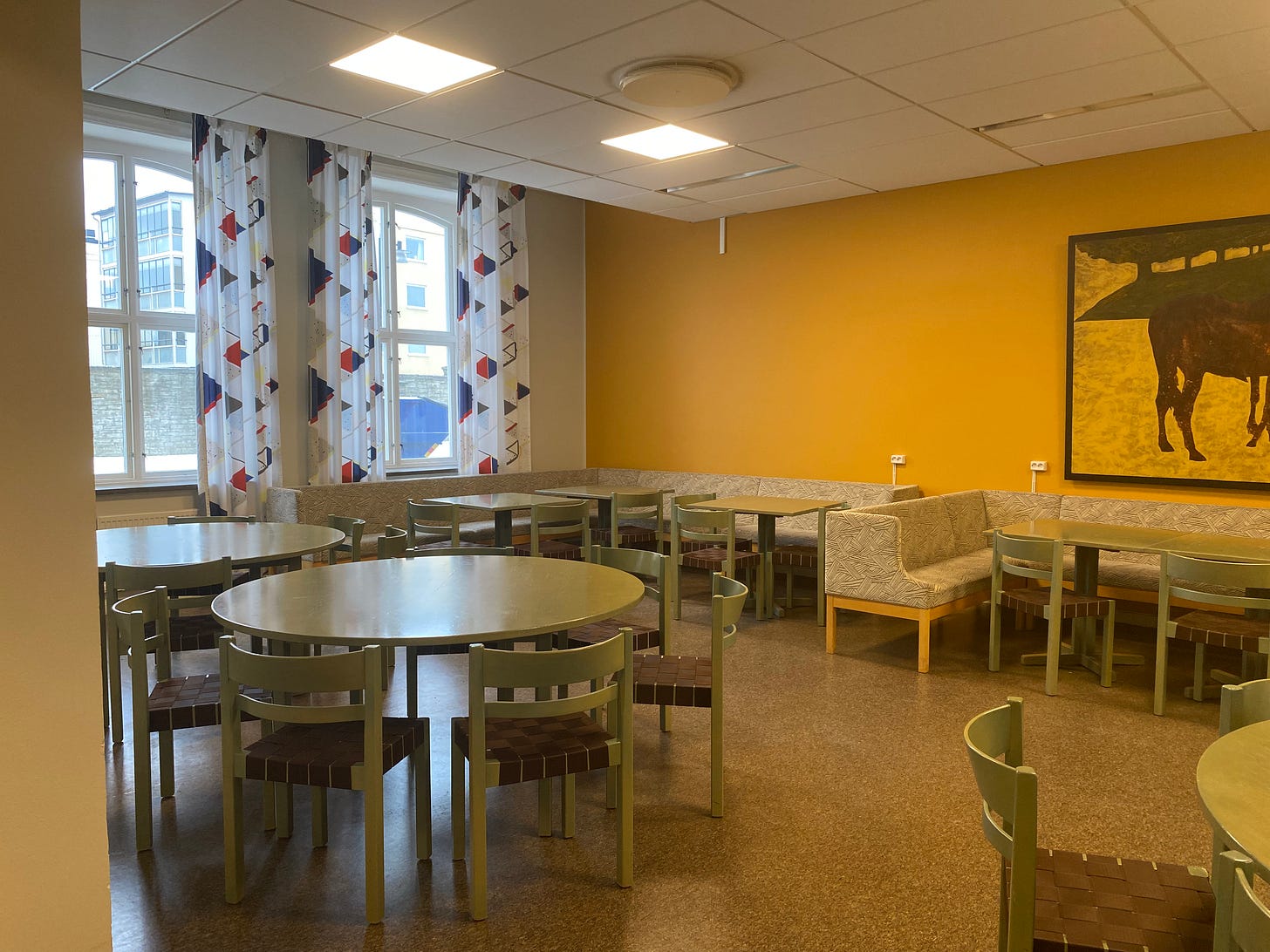 Another seating area in a University. You fill find students resting, doing their school work, having lunch during school days. Unlike the US where I saw people purchased lunch everyday, in Sweden it is common for people to bring their own lunch.