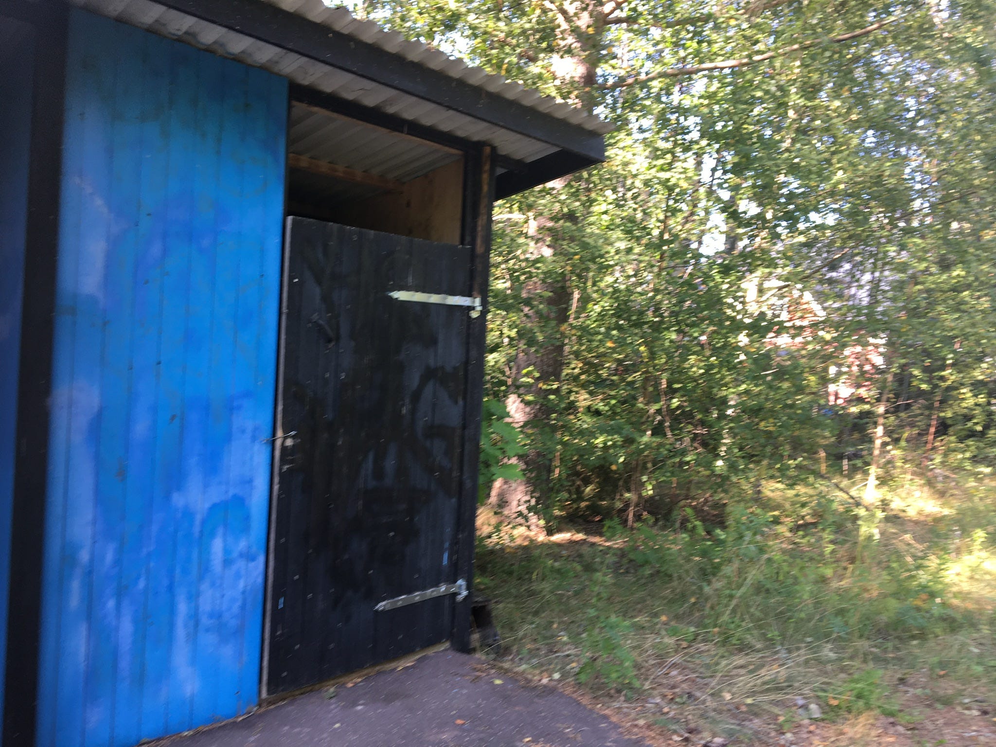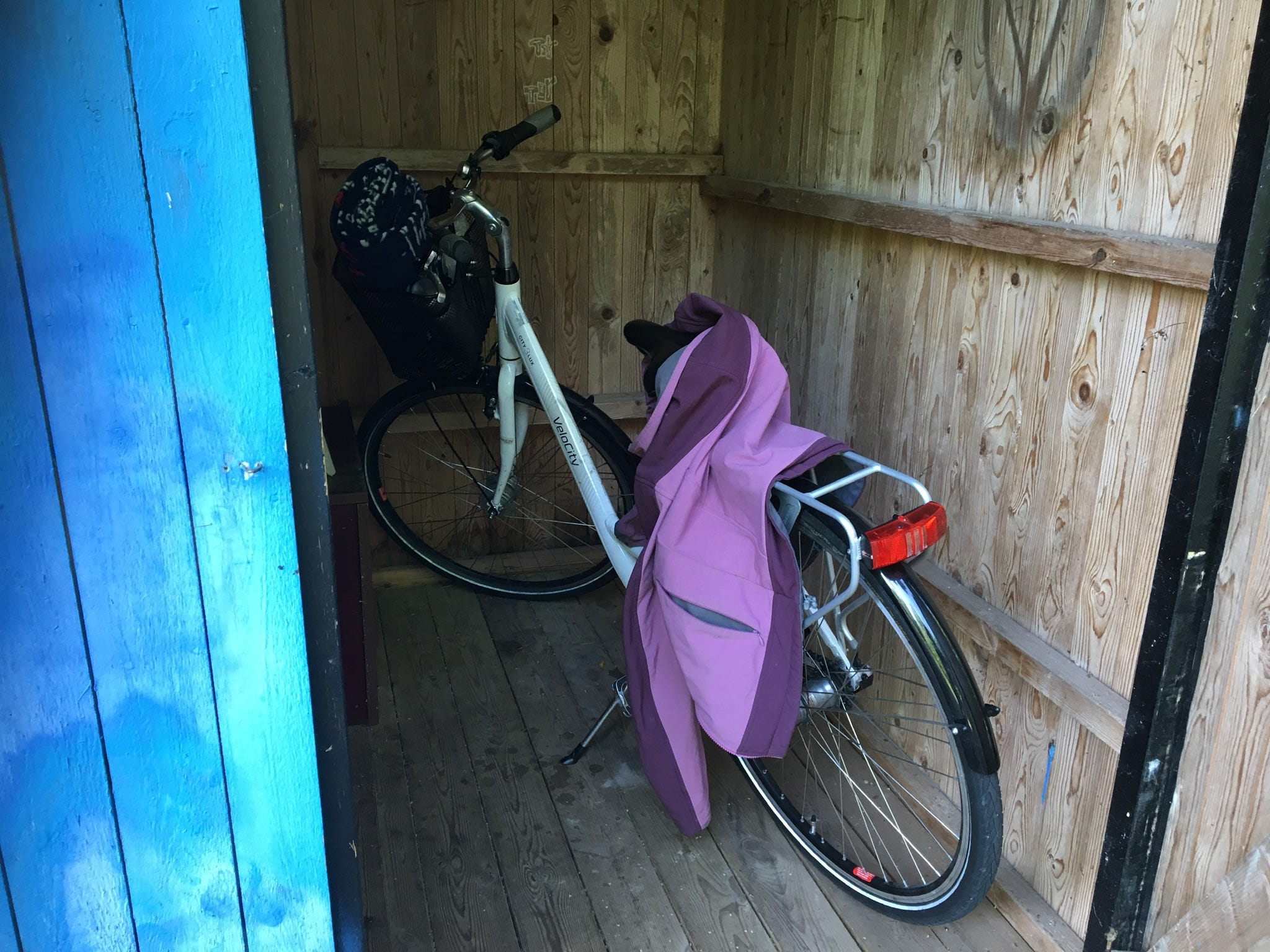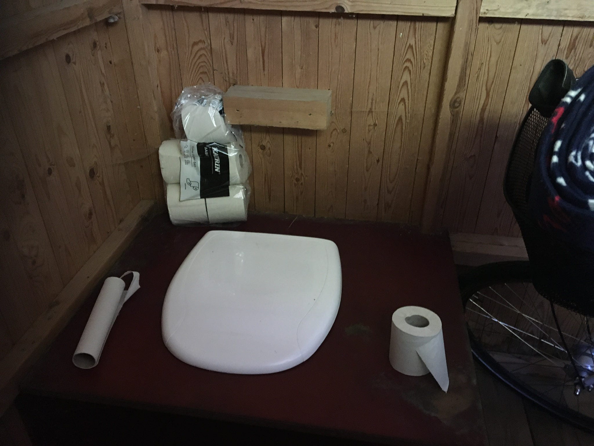 Public toilet (latrine. style) on a road meant for bikers. Below is the picture from inside. It is large enough to bring the bike inside.