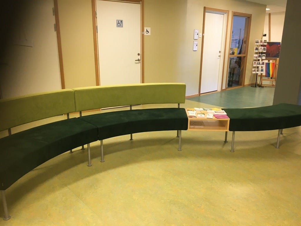 The first semester in Sweden I heard a professor complain as soon as he sat down in a chair, “Who designed this?” I had never heard anyone question design of a public place, ever. No one ever expected comfort in public places.